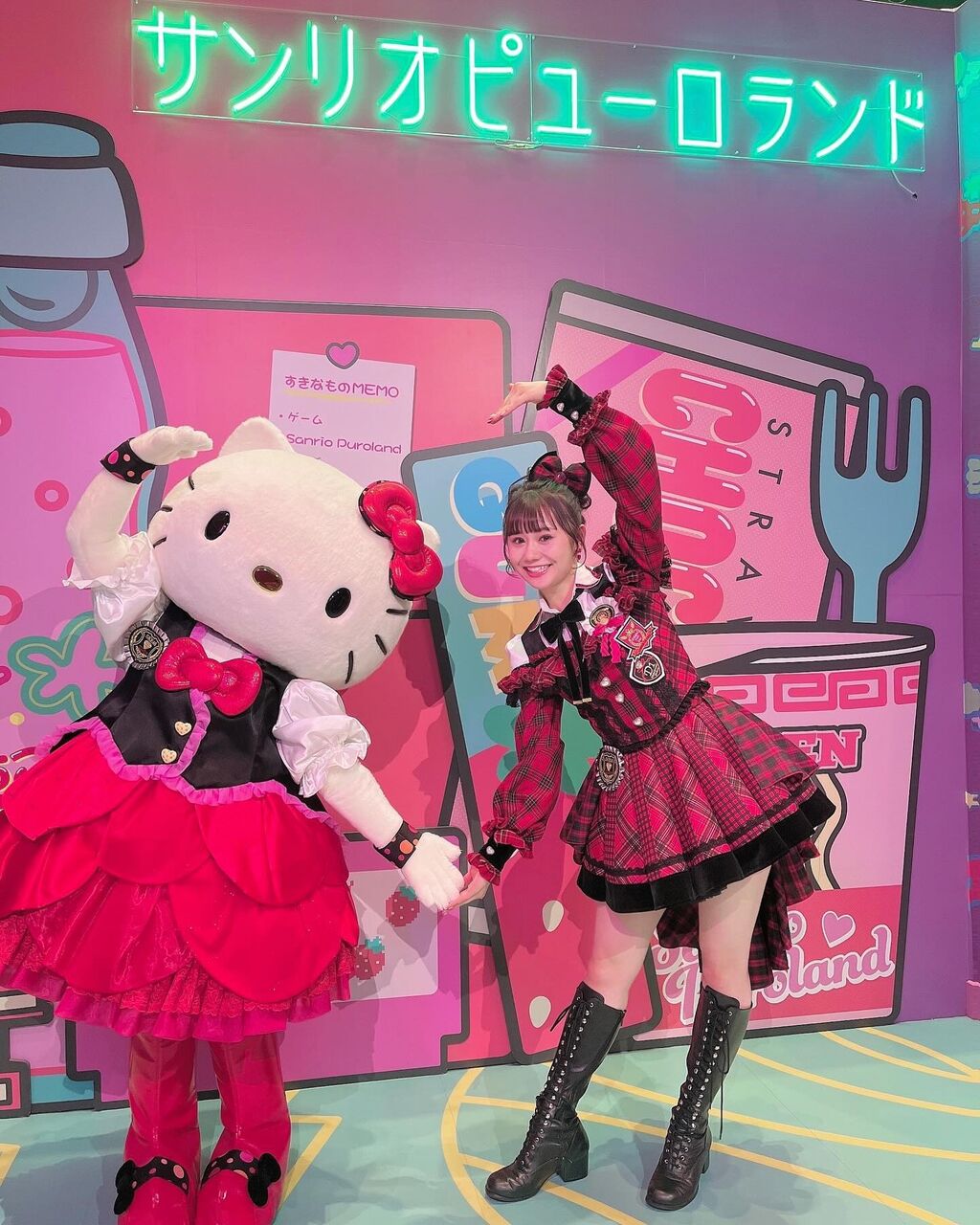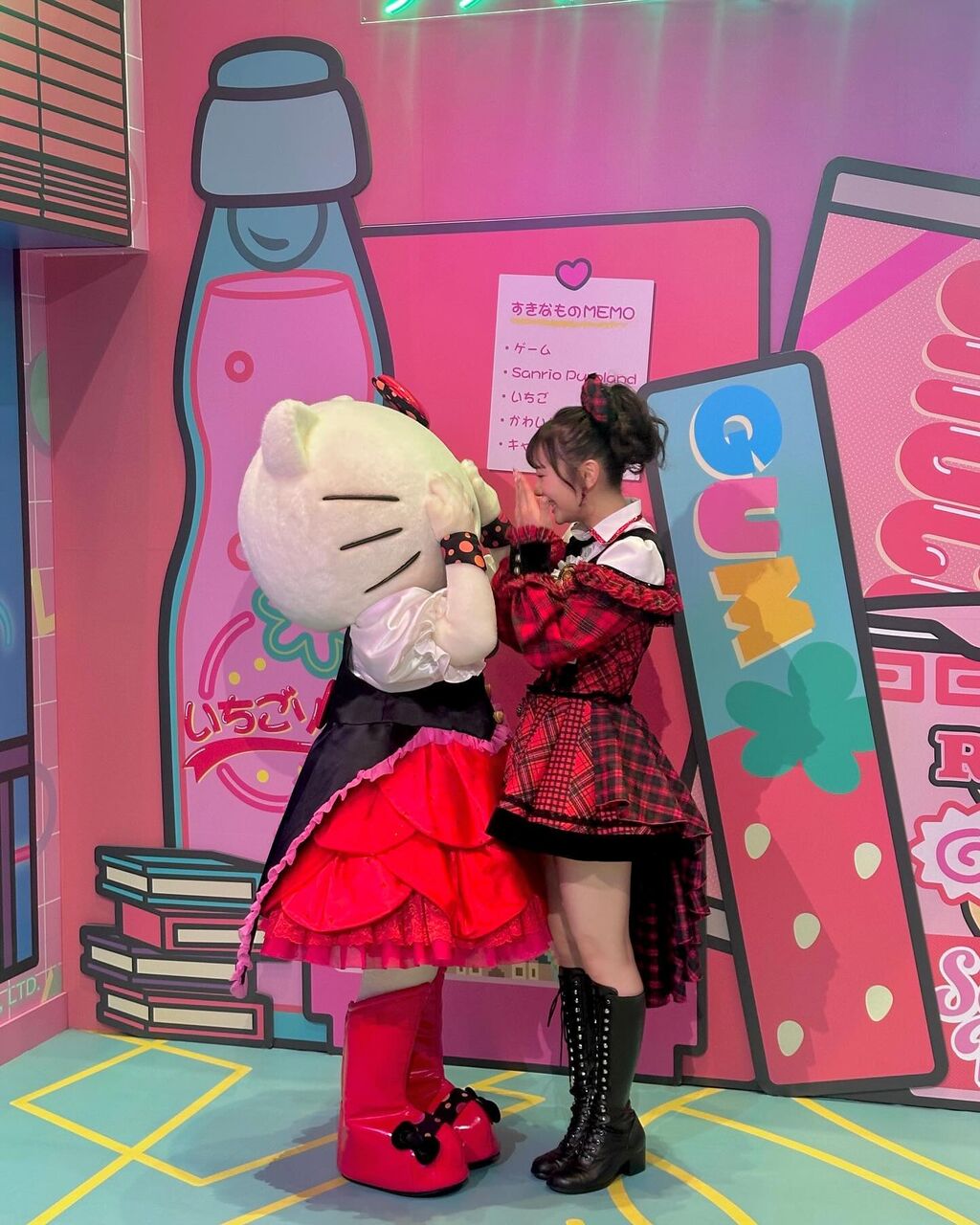 この日の為に衣装さんがキティちゃんとのお揃いリボンも作ってくれました🥹頭に注目!!!