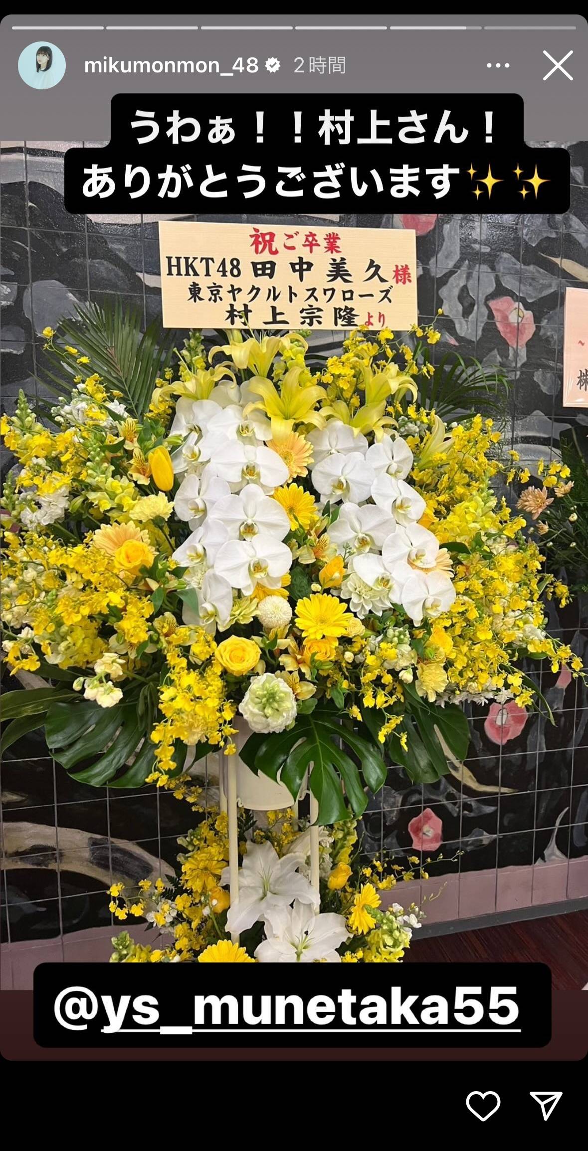 田中美久卒業コンサートに三冠王から祝花が!!