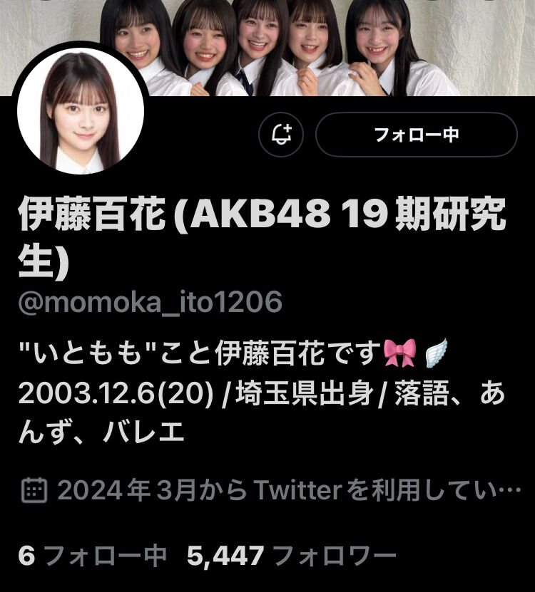 【朗報】 大天使 AKB 19期生 伊東百花ちゃん フォロワー数が順調の伸びて行く👍 【見つかった】