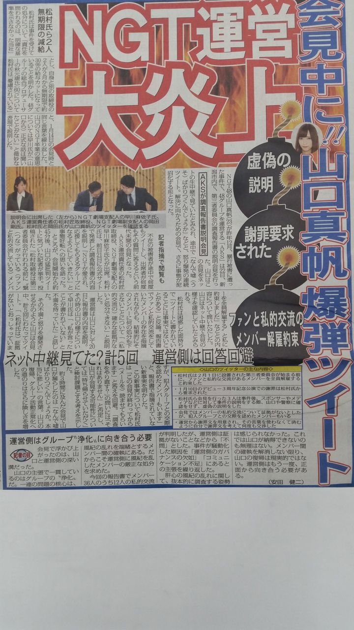 【速報】NGT48運営の記者会見、今朝の新聞の扱いがどこも予想以上にデカイ! しかも西潟や太野の名前や顔写真まで掲載されてる