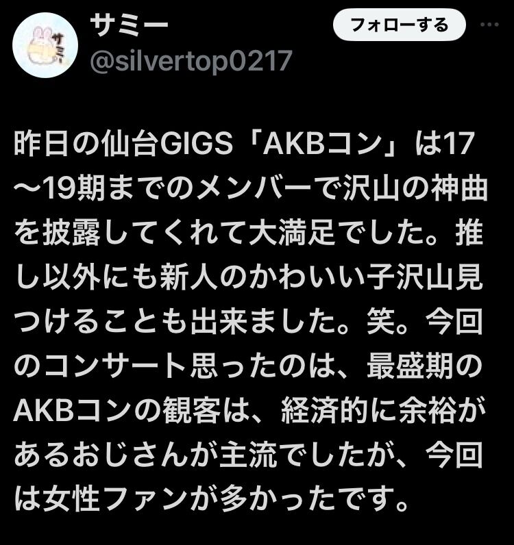 【朗報】AKB 若手コン(仙台)は女性ファンが多かった模様 (°▽°)