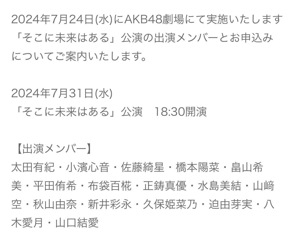【速報】7月31日の「そこに未来はある」公演にはるぴょん出演キタ━━━━(゚∀゚)━━━━!!【誤植?】