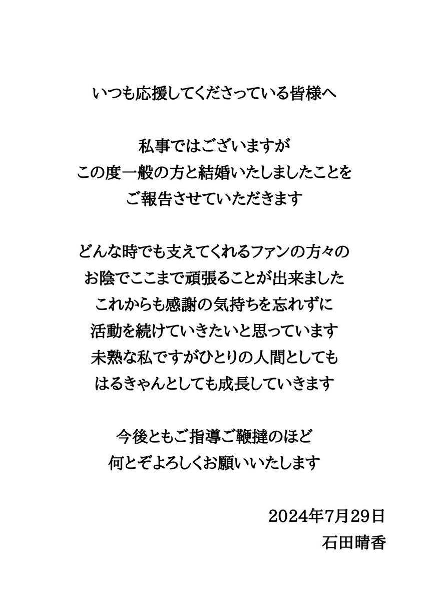 【速報】 元AKB48石田晴香さんが結婚!!!
