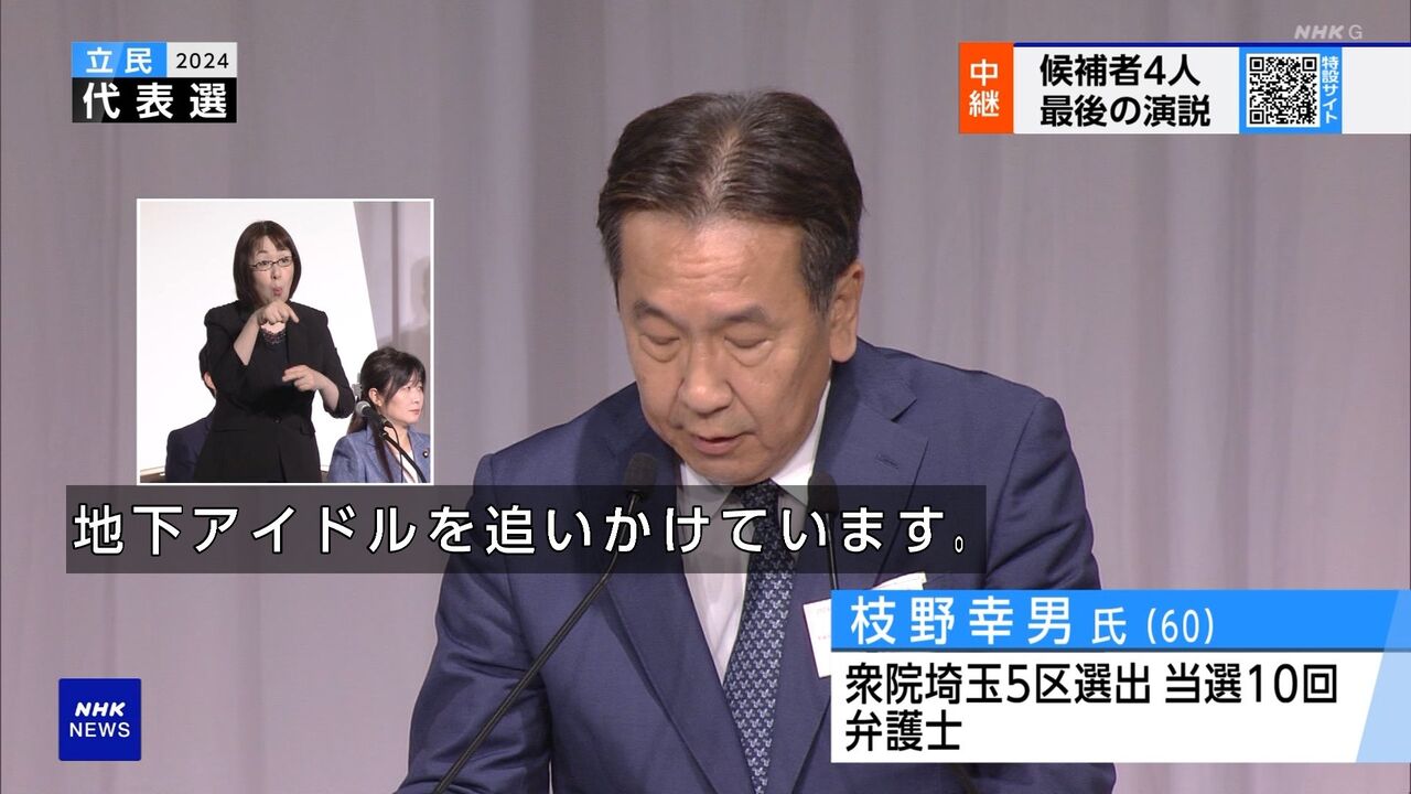 立憲民主党 枝野氏「私の次男は誰に似たのか、地下アイドルを追いかけています」