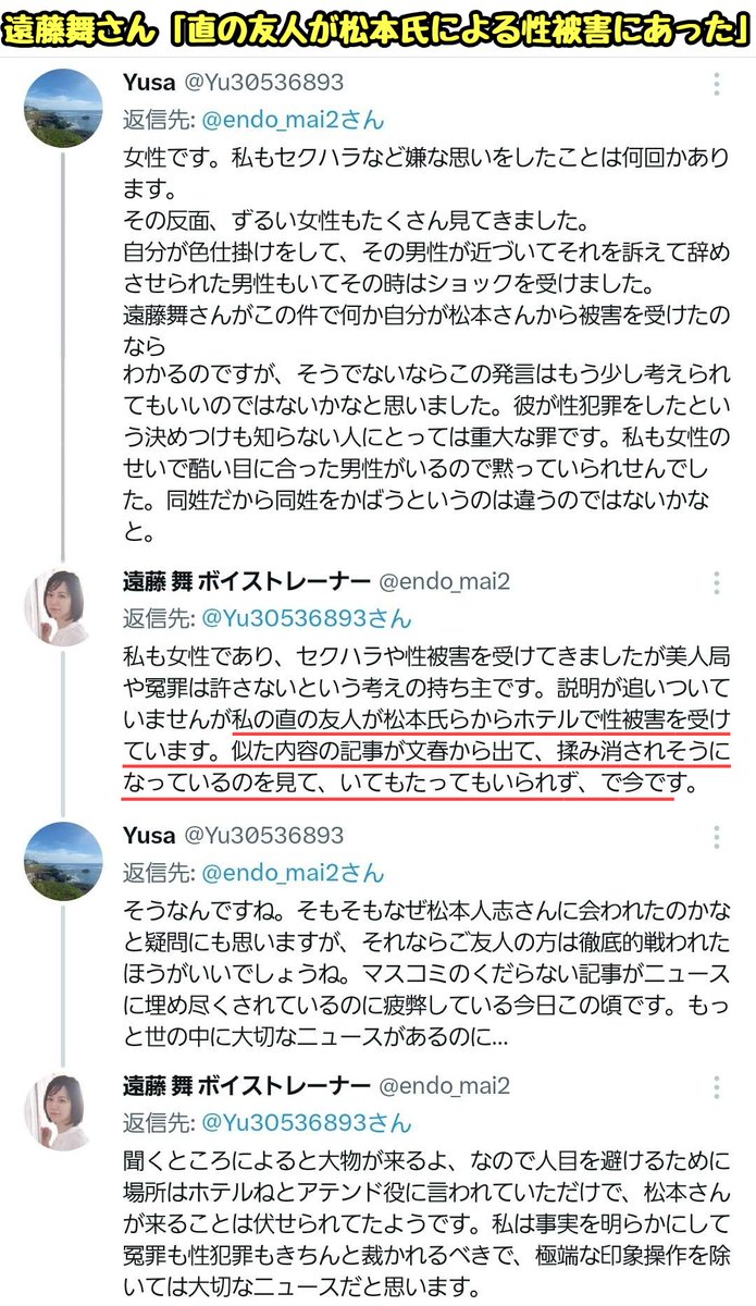 「松本さんを擁護してる人って殆ど彼が『面白い』から信じて庇ってるの。そうだね彼は面白いよね。けど