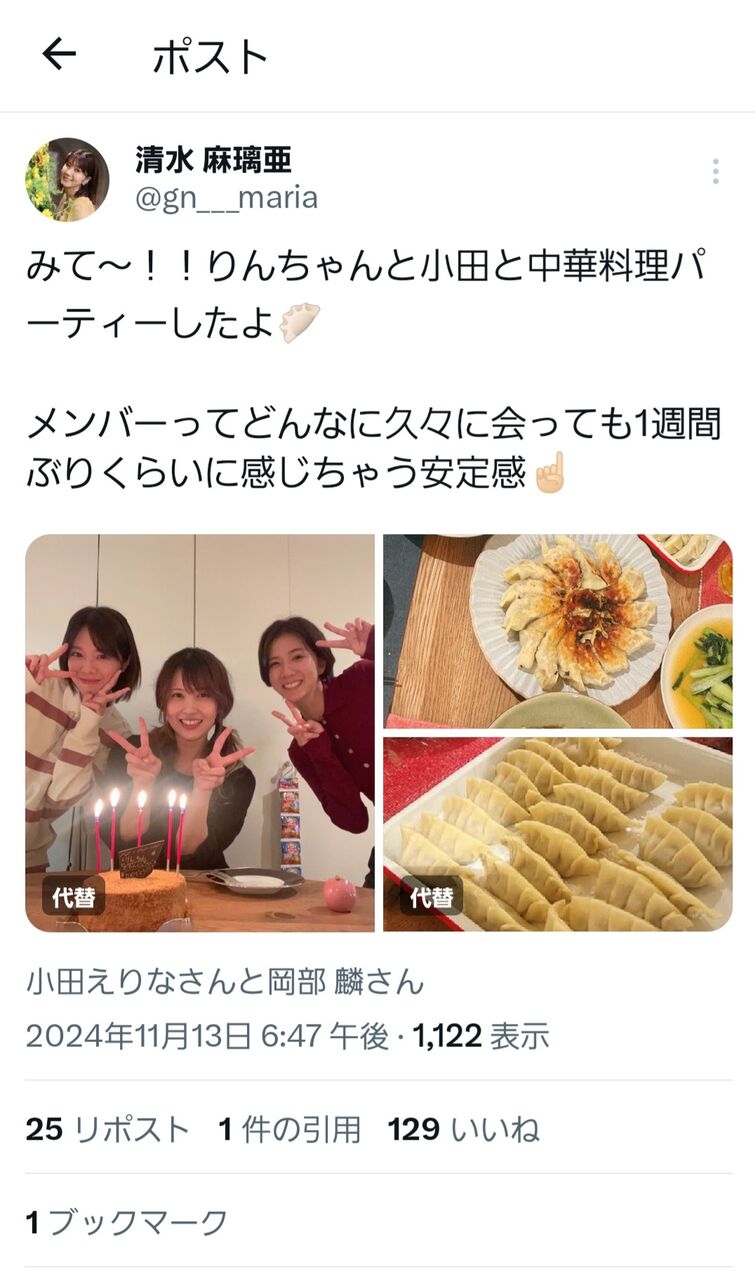 【朗報】清水麻璃亜さん、エイトメンバーと中華料理パーティーをする