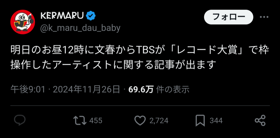 【炎上】レコード大賞に文春砲!TBSが『枠操作』 ついに打ち切りかwwwwwwwwwwwwww