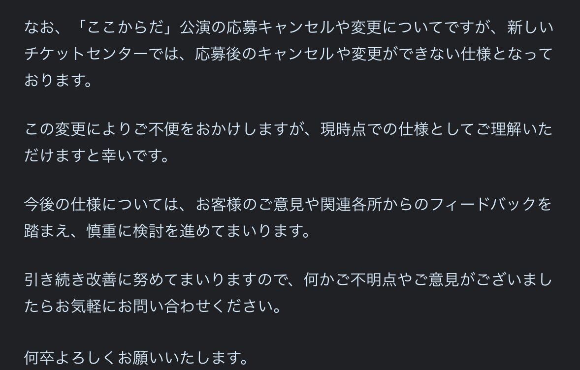 【悲報】新チケセンは公演応募のキャンセルや変更は不可という糞仕様だった