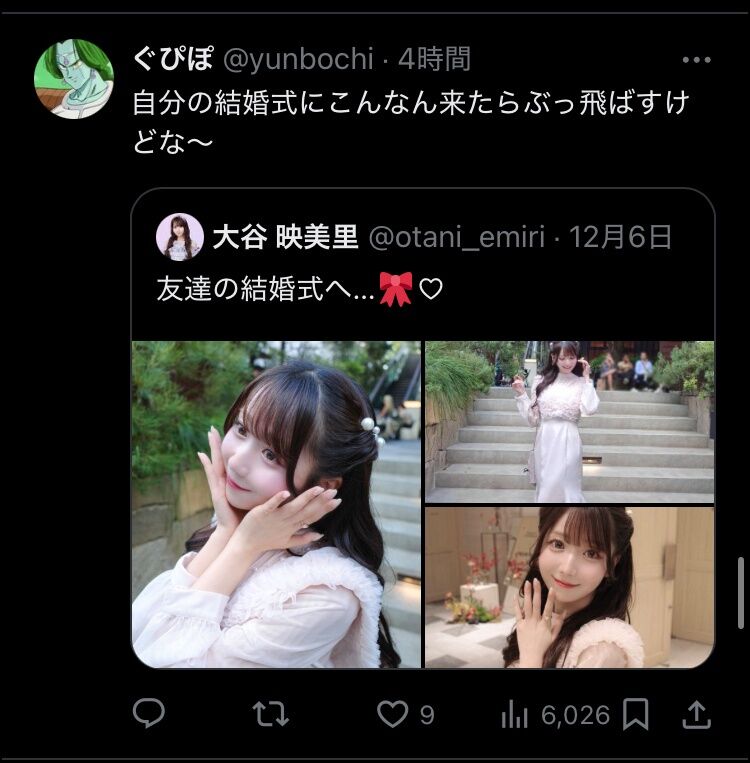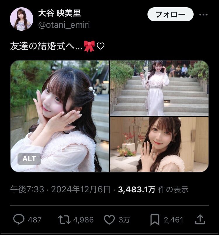 【炎上】イコラブ大谷映美里「友達の結婚式楽しかったー!」→「マナー違反」「常識知らず」と炎上wwwww【=LOVE】