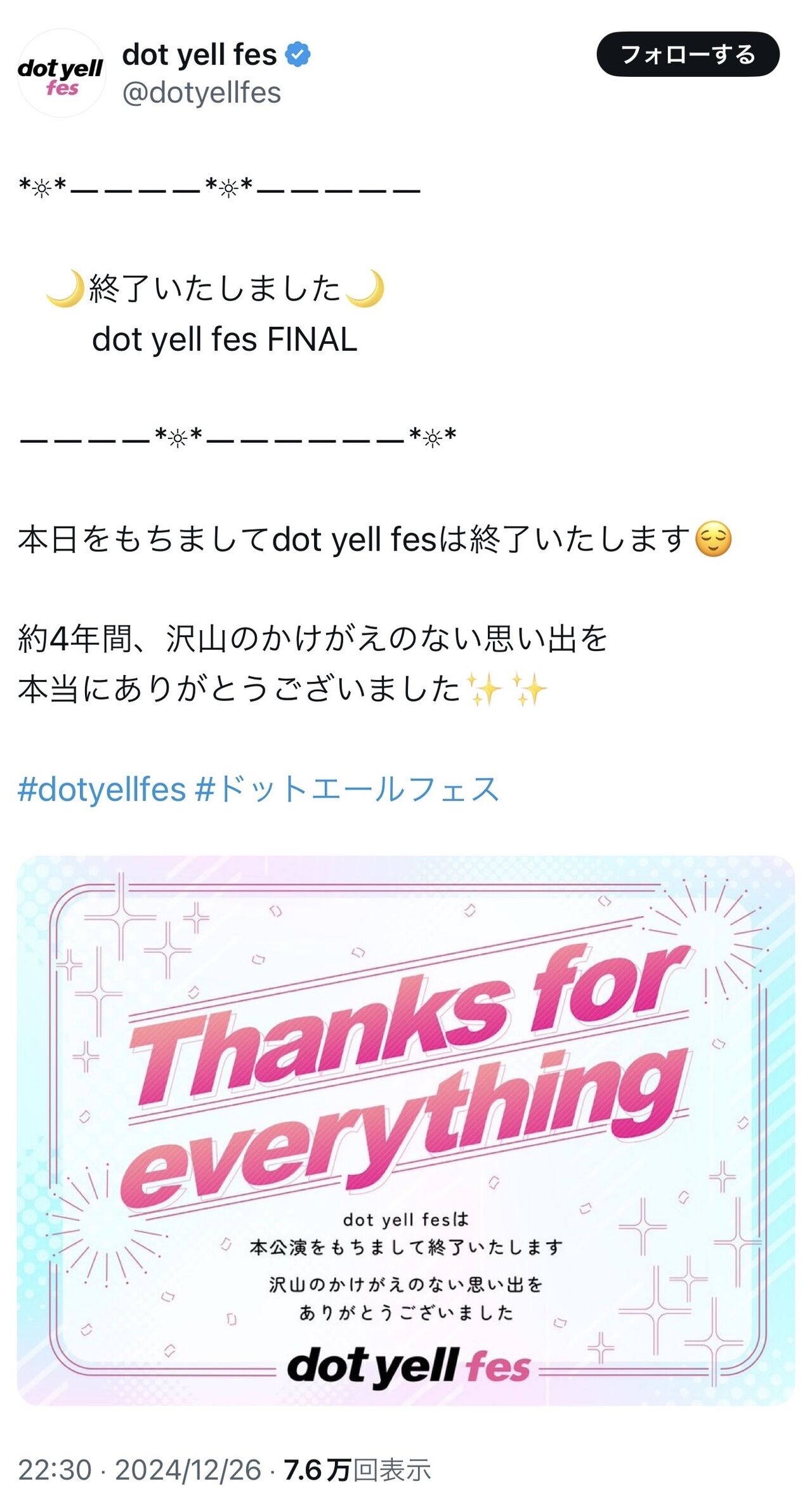 【悲報】チーム8もお世話になった対バン「dot yell fes」が今年限りで終了する