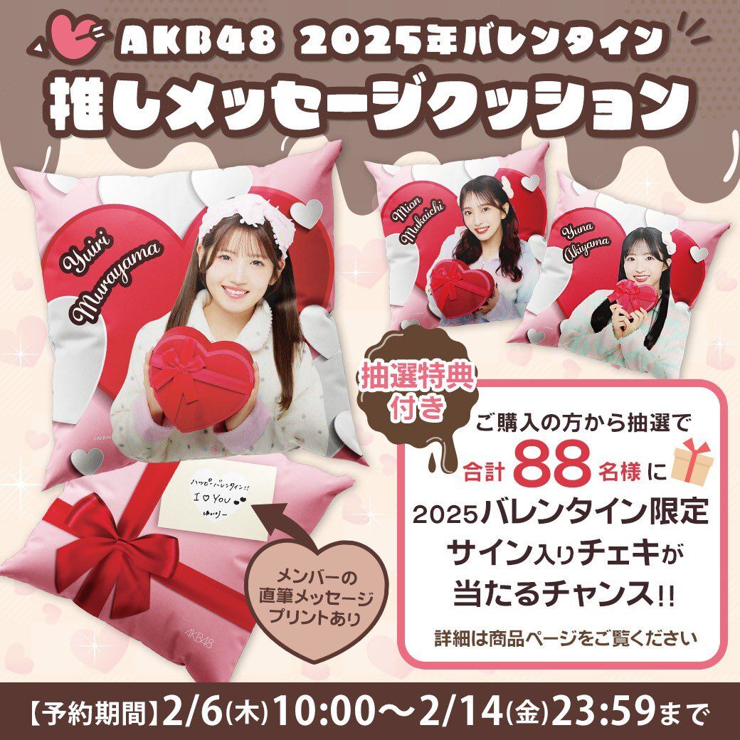 【朗報】「AKB48 2025年バレンタイン 推しメッセージクッション」が発売!