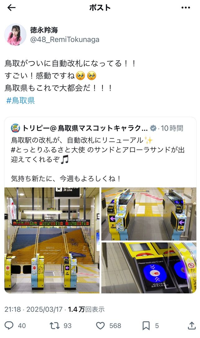 れみたん「鳥取駅が自動改札になってる!すごい!これで鳥取県も大都会だ!」