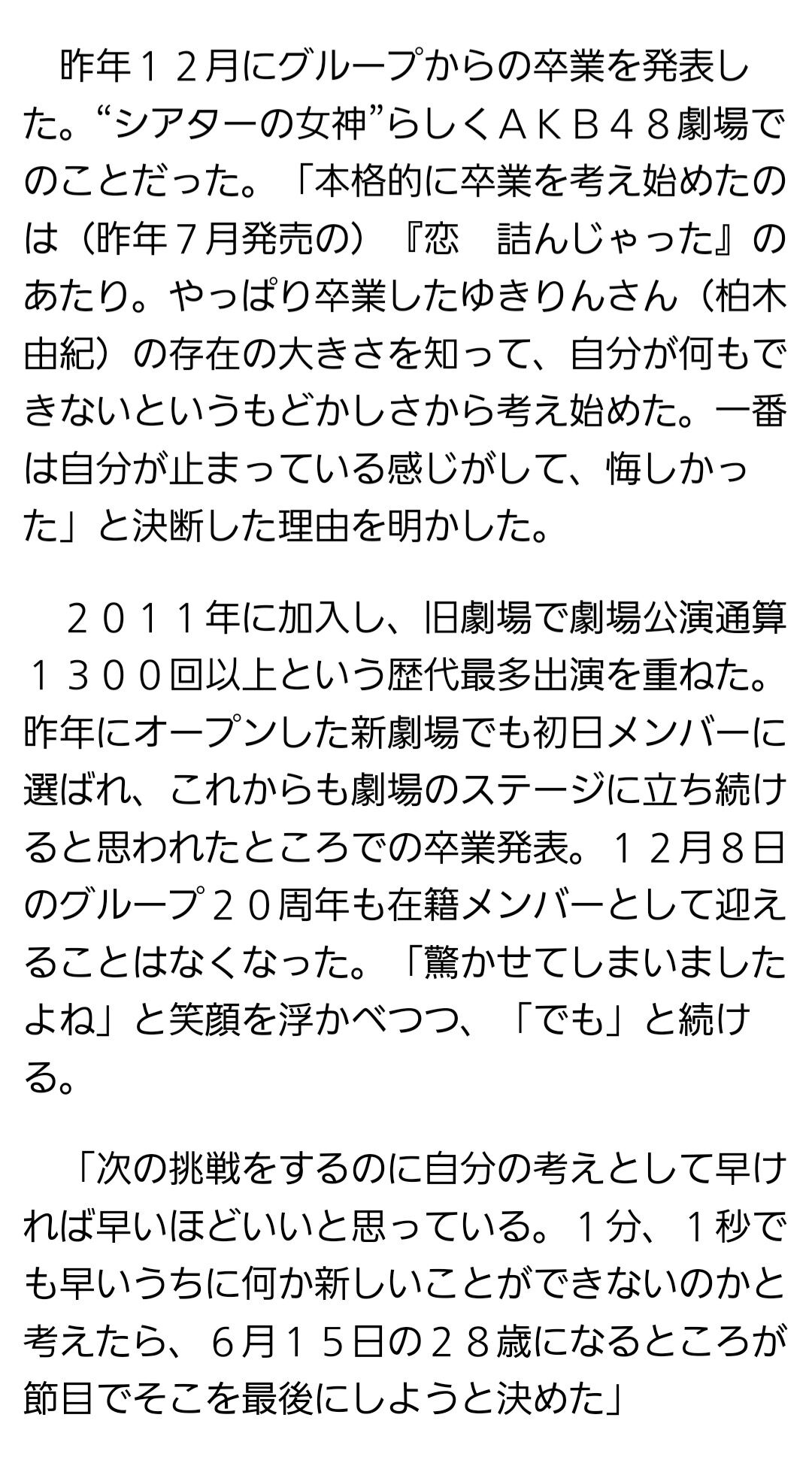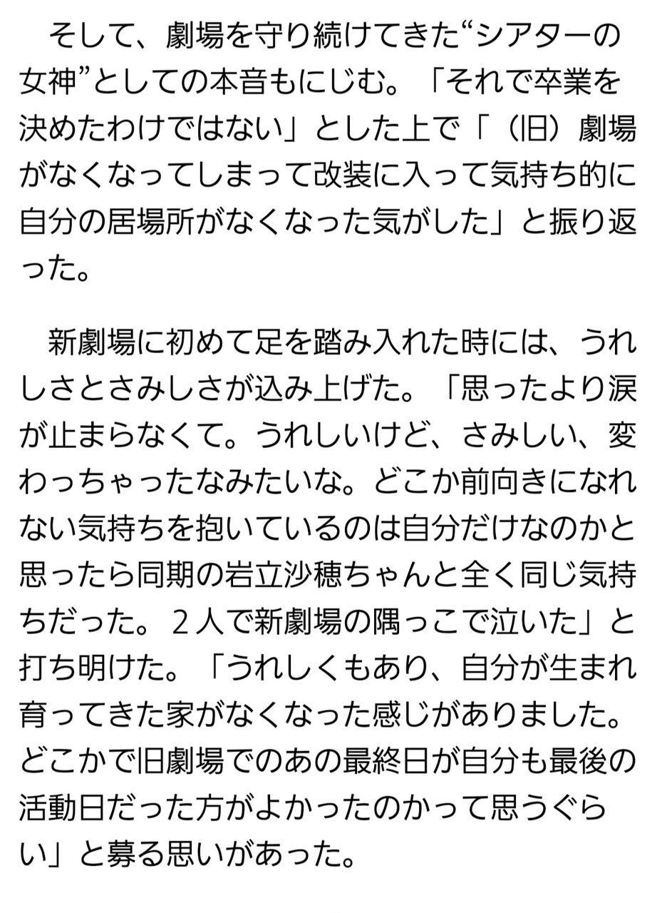 村山彩希「旧劇場がなくなってしまって、気持ち的に自分の居場所がなくなった気がした」