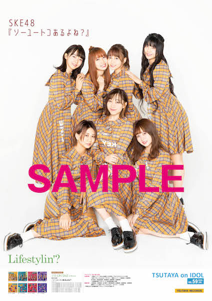 全国のTSUTAYA RECORDSにてSKE48 26thシングル「ソーユートコあるよね?」(初回限定盤TYPE-A〜D)を購入された方に先着で応募ハガキをプレゼントいたします。応募要項に沿ってご応募された方の中から抽選で「江籠裕奈、大場美奈、北川愛乃、須田亜香里、髙畑結希、高柳明音、古畑奈和 直筆サイン入り撮り下ろしLifestylin’?ポスター(10名様)」をプレゼント!