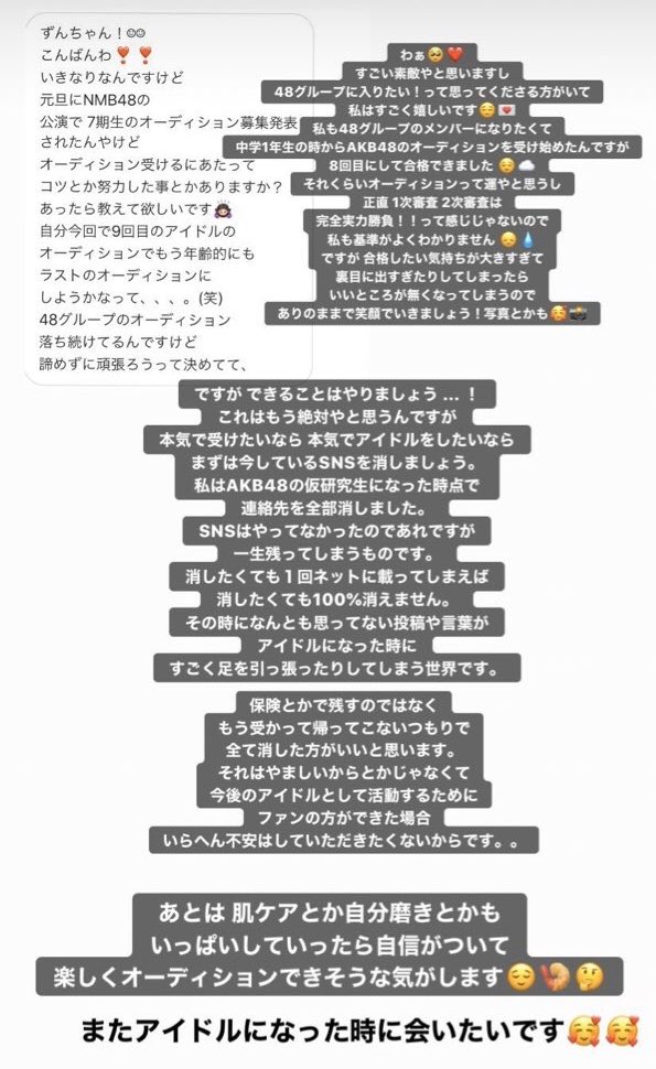 ずんちゃん「本気で受けたいなら、本気でアイドルをしたいならまずは今しているSNSを消しましょう」