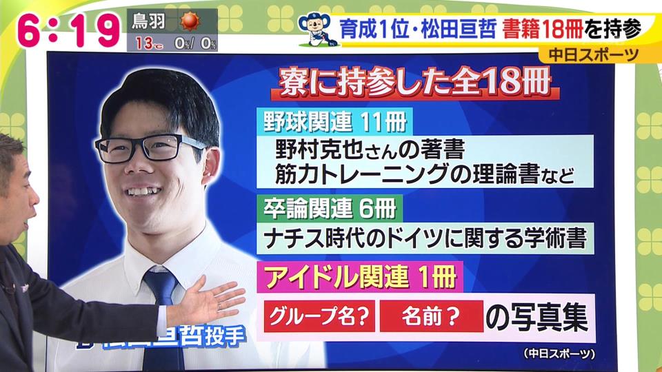 中日ドラゴンズ・育成ドラフト1位の松田亘哲投手が寮に持参したアイドルの写真集は!!