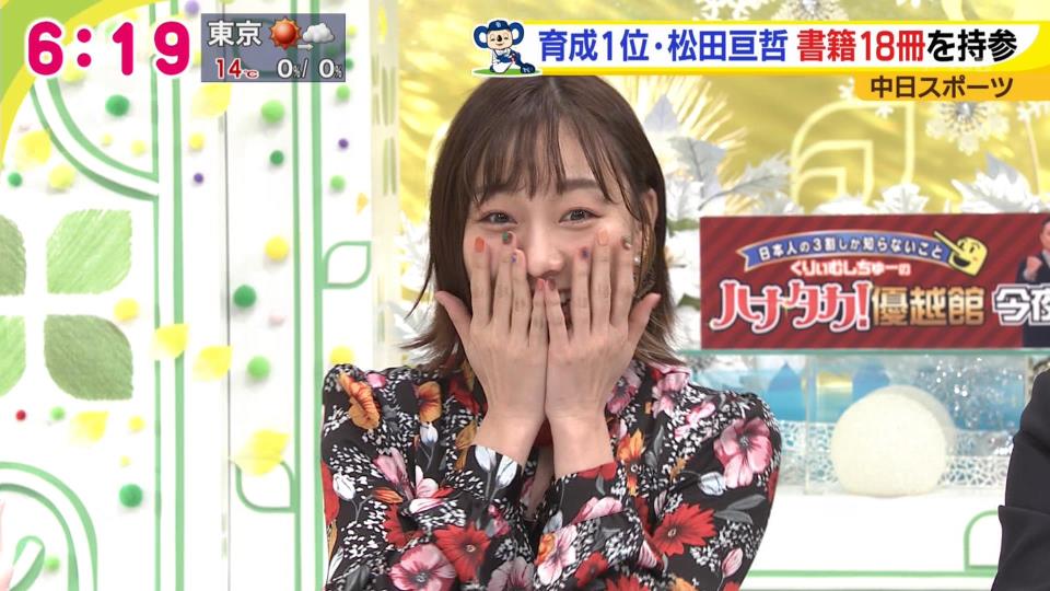 育成1位松田選手が寮に持ち込んだ写真集の話題になり思わず立ち上がるあかりん😂😂
