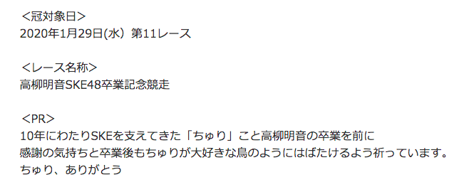 高柳明音SKE48卒業記念競走