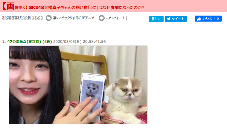 【SKE48】話題の“うにちゃん”猫まとめサイトデビューキタ━━━━━━(゚∀゚)━━━━━━ !!!!!