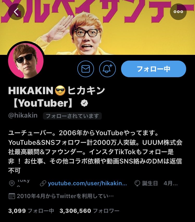 ヒカキンさんからフォロバされてる……ええええええ本当にありがとうございます😭✨