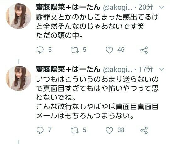 AKBチームB齋藤陽菜さんの病みツイートをご覧ください