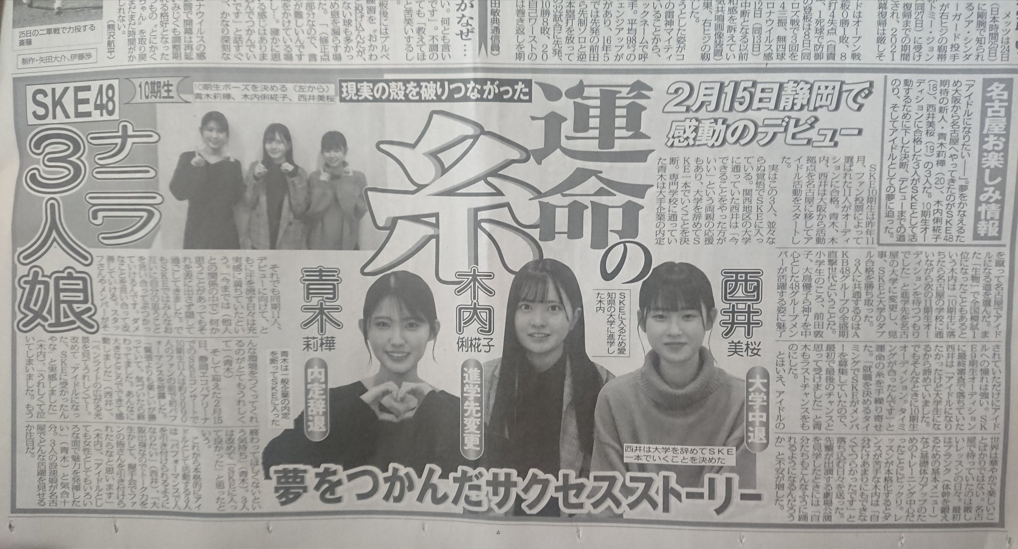 【SKE48】10期生 大手企業内定辞退、進学先変更、大学中退 支えなきゃ