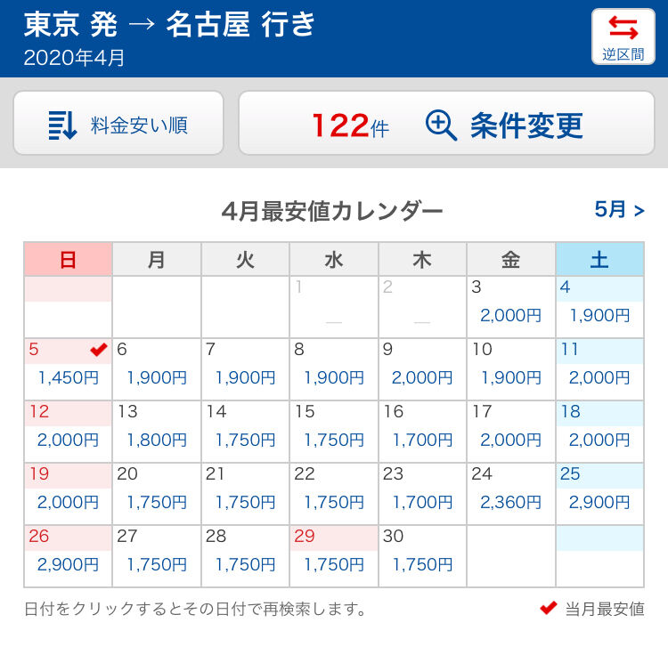 『東京 発 → 名古屋 行き』の価格が暴落…