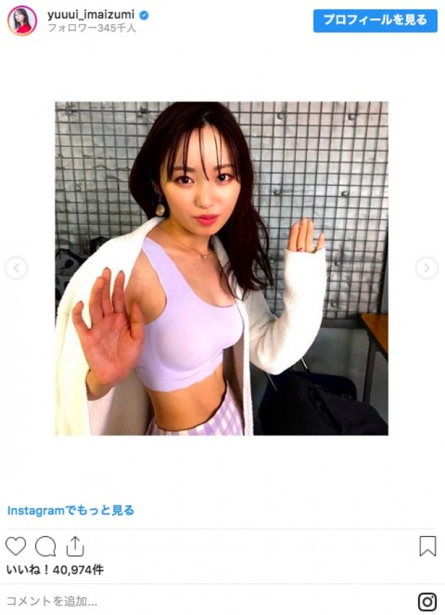 今泉が「可愛くてお気に入り」と投稿したのは、ラベンダー色のランジェリーを身につけた自身のショット。彼女は現在、
