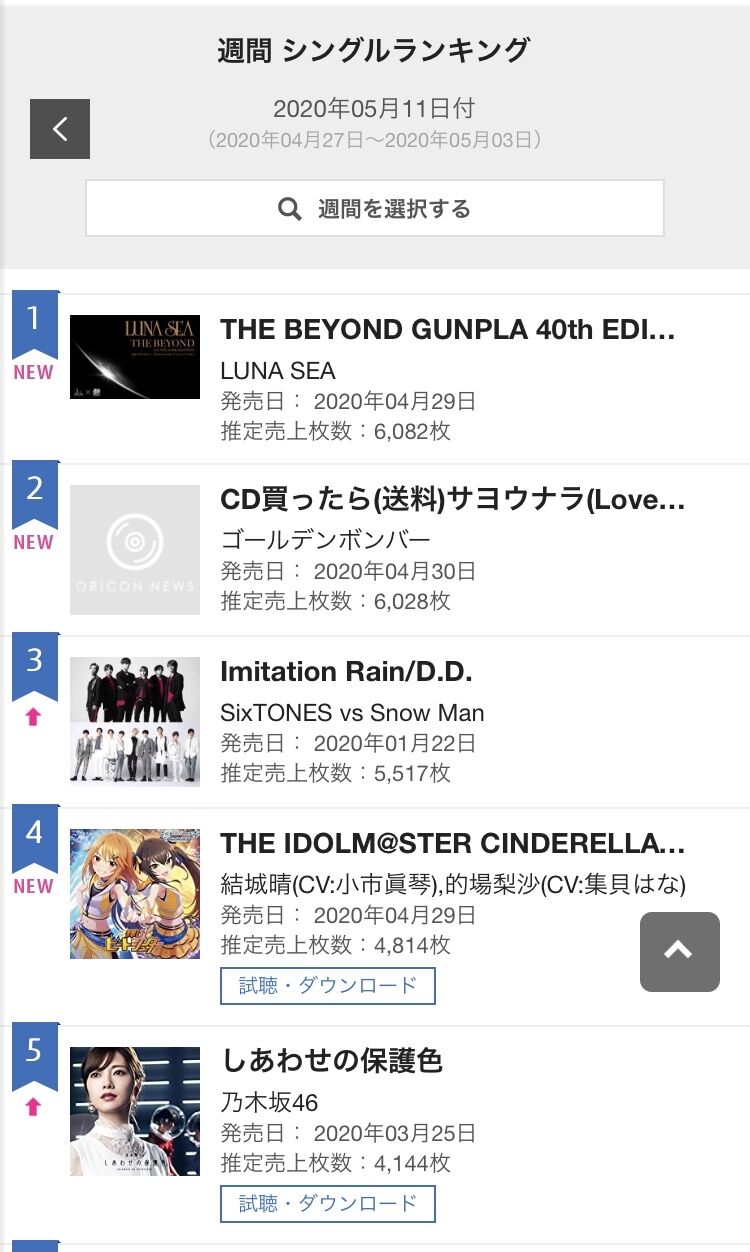 今週のオリコンウィークリー第1位が6,000枚・・・