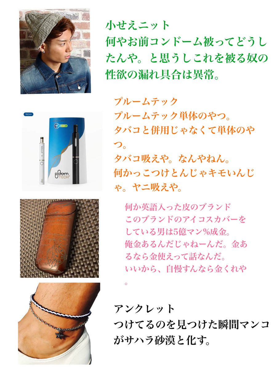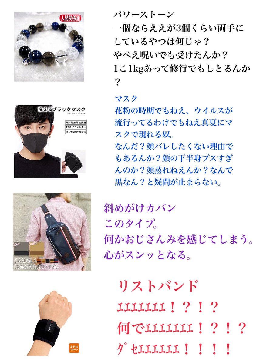 独断と偏見の男がつけてる地雷アイテム一覧です。