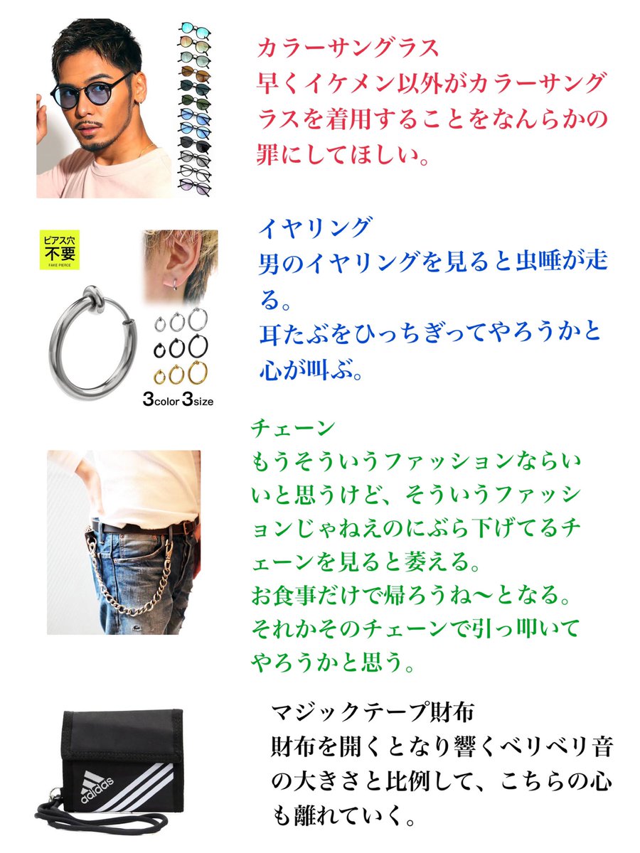 ツイッターまんさん「男がつけてる地雷アイテム一覧」→5万いいねwwwwwwwwwwwwwww