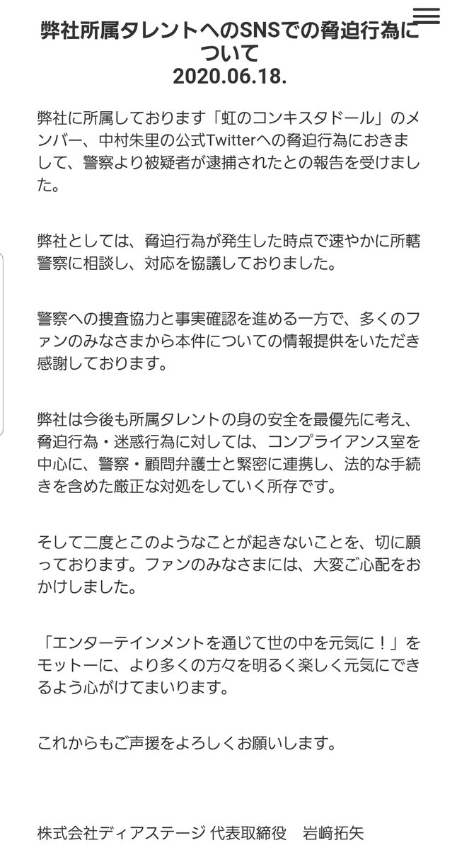 女性アイドルに犯罪予告した男が逮捕される。地下民のアンチも逮捕祭りか