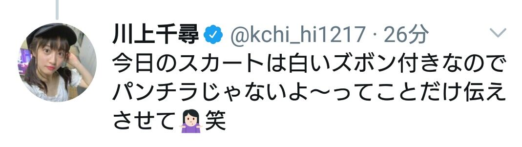 【速報】NMB48川上千尋、パンチラと騒がれた画像をTwitterで完全否定! 「パンチラじゃないよってことだけ伝えさせて」