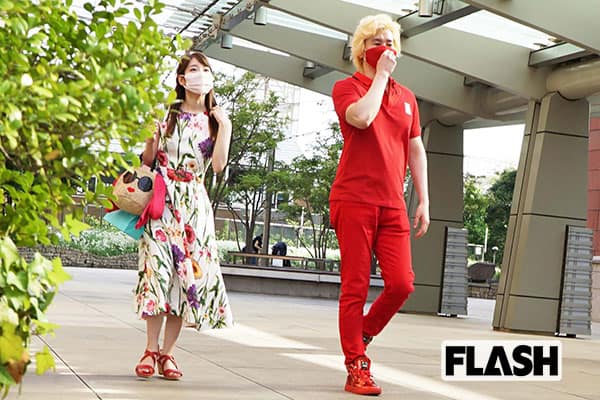 6月下旬、東京・六本木ヒルズ。通り過ぎる客が続々と振り返るなか、全身赤ずくめの金髪ヘアで堂々と歩く、カズレーザー(35)がいた。隣には、ワンピース姿の美女が。