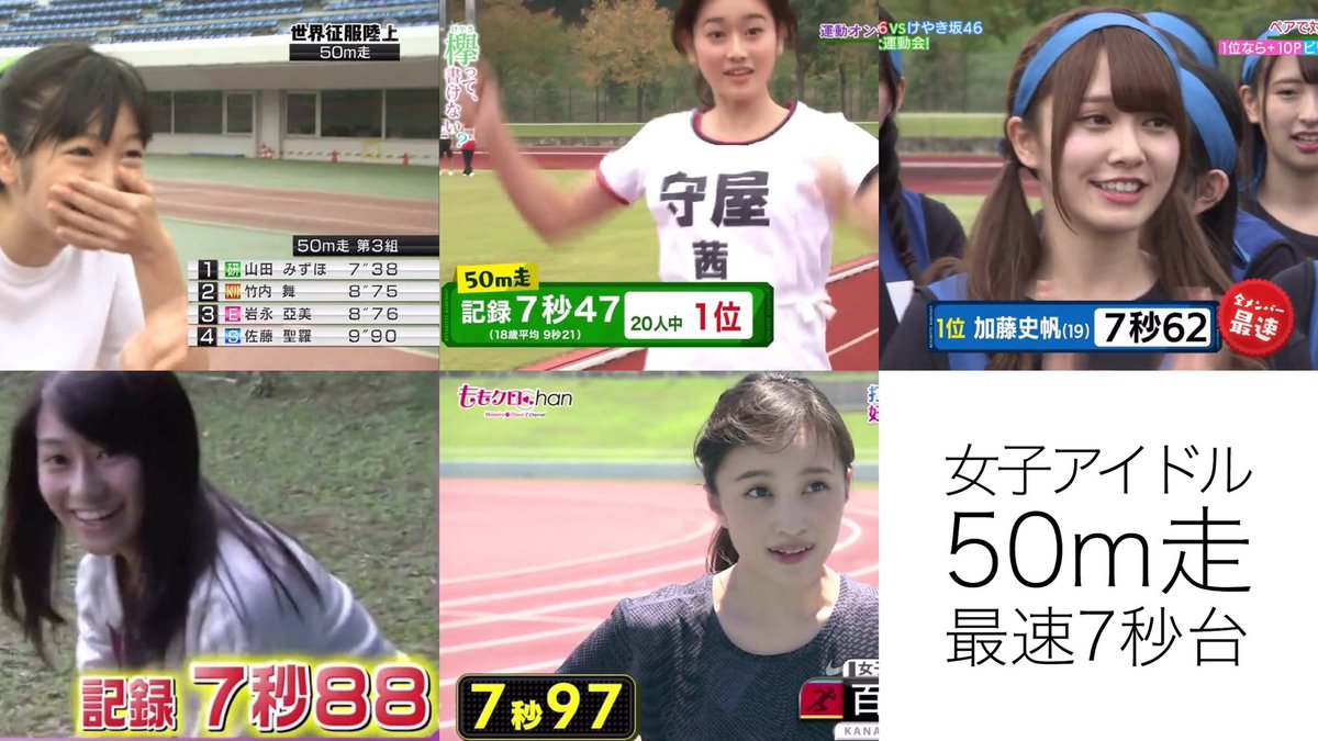 グループ別 女子アイドル50m走 最速7秒台(高校女子平均:8秒89)