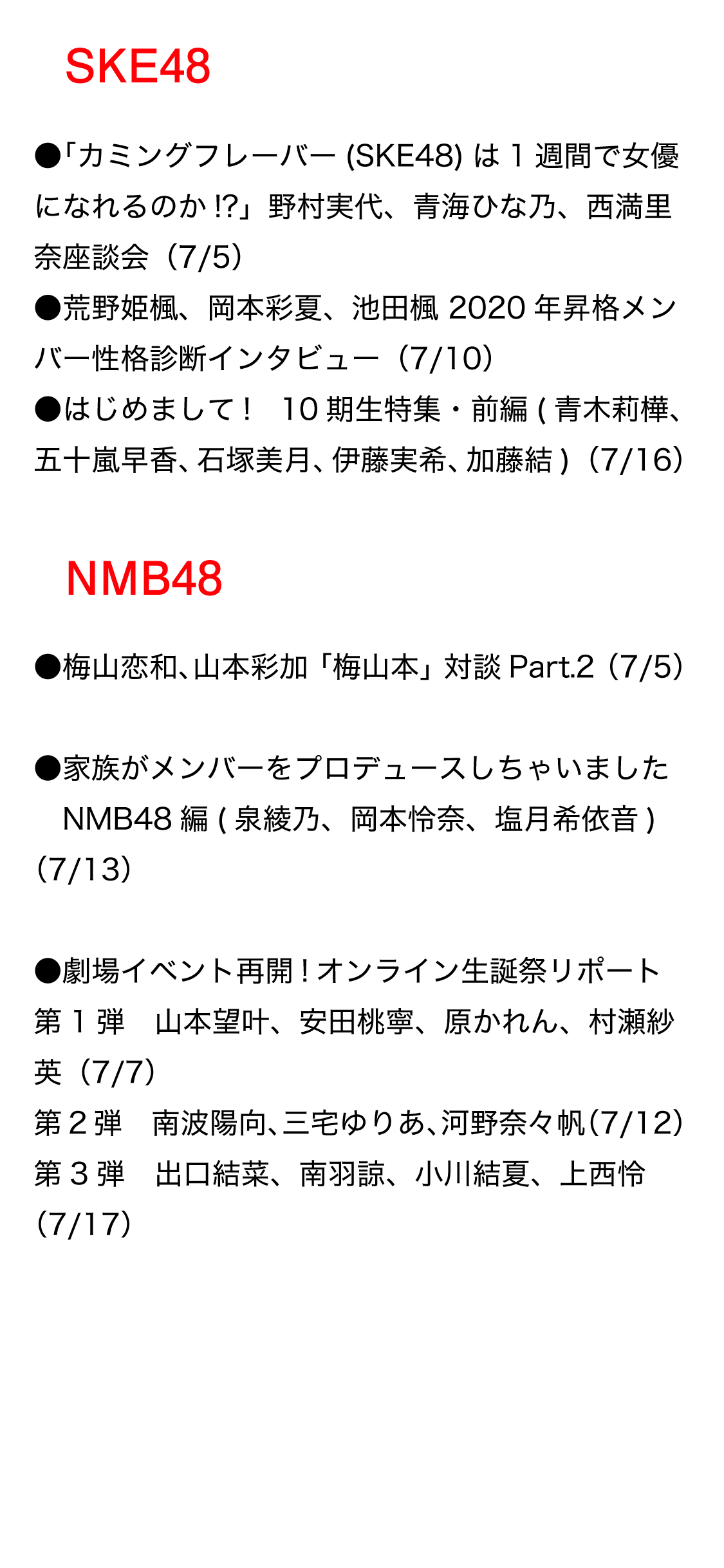7/5、17時より公開のAKB48 Group新聞電子版「Forty-Eight Times」7月号の目次と掲載スケジュールを先行公開
