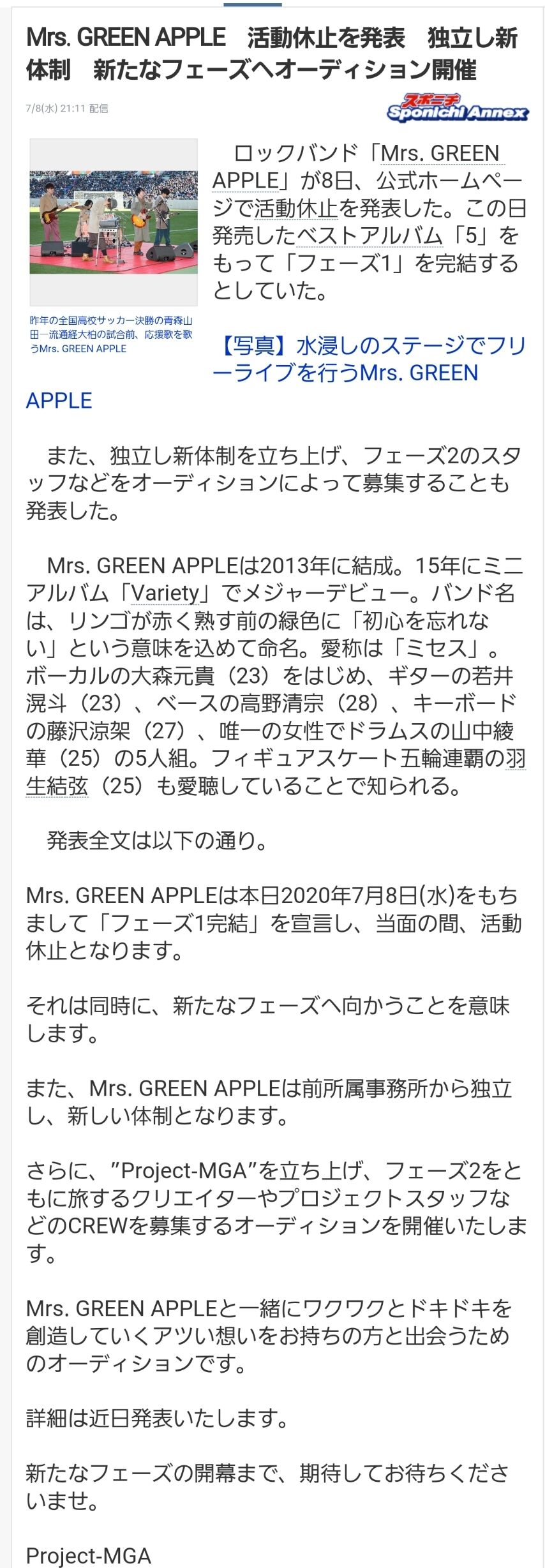 悲報!平手友梨奈が復帰MV出演したMrs. GREEN APPLEが活動休止!【平手は疫病神かw】