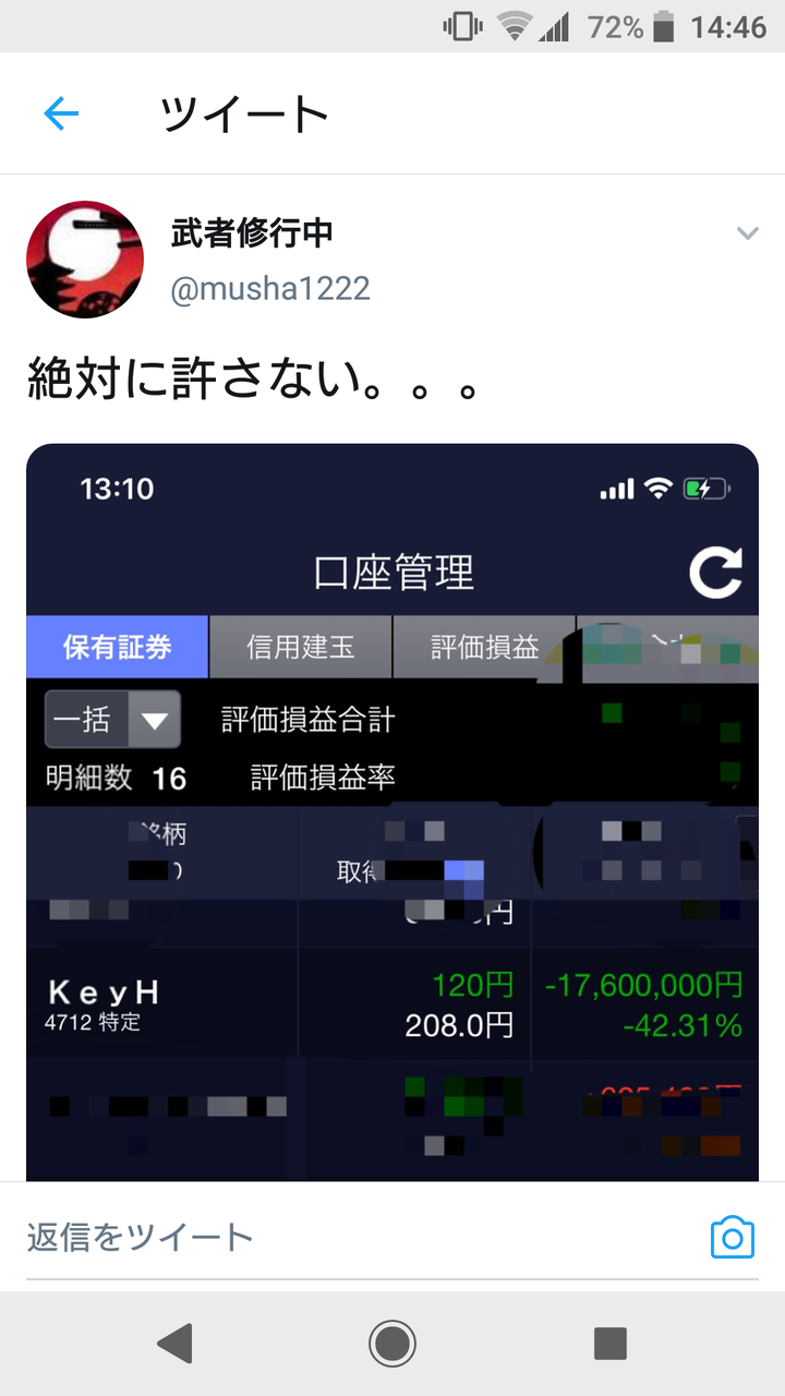 ツイッター民、KeyHolder株で1700万円溶かす