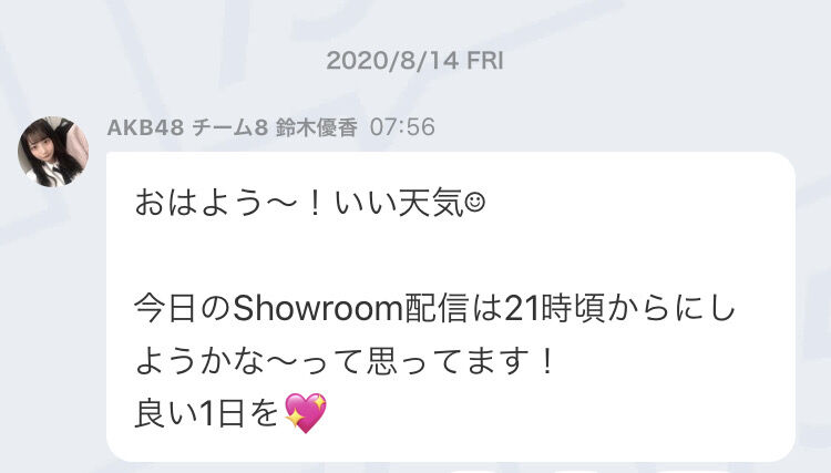 【朗報】チーム8 鈴木優香ちゃん「私は 8/15が誕生日なので、今日から3日連続 特別配信します。」