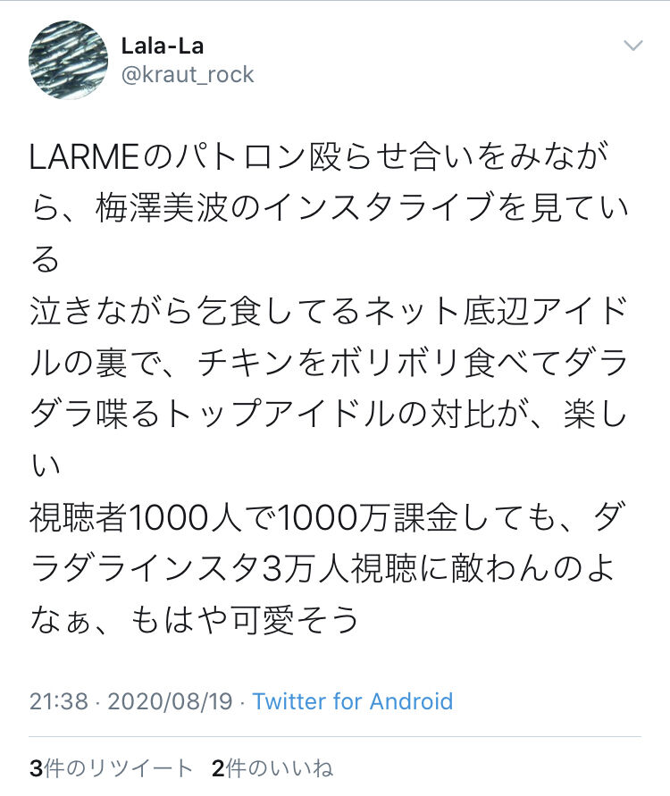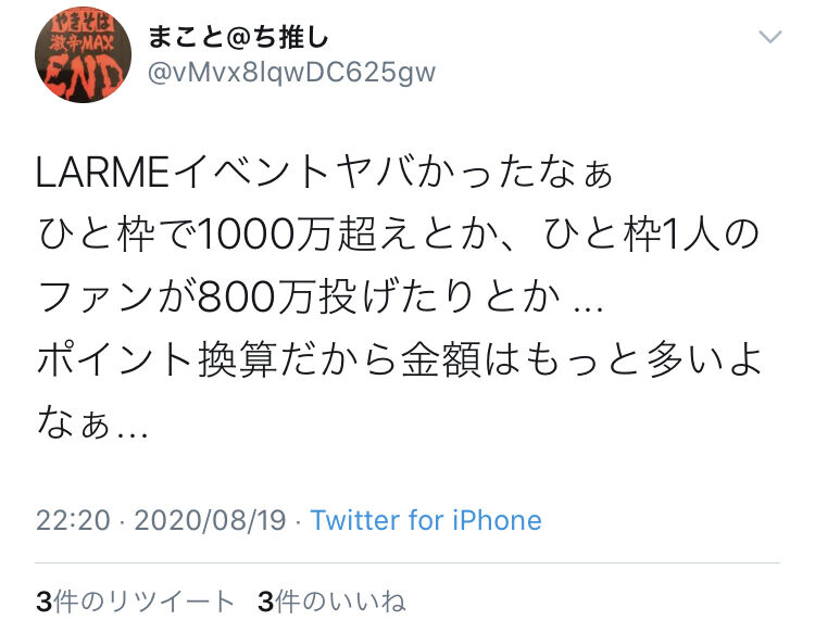 LARMEイベント、地獄の課金レースになってしまい視聴者ドン引き中
