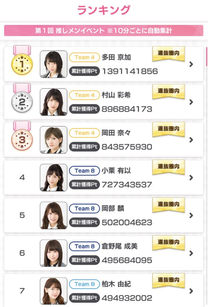 新曲で判明した序列が高いメンバー 12人